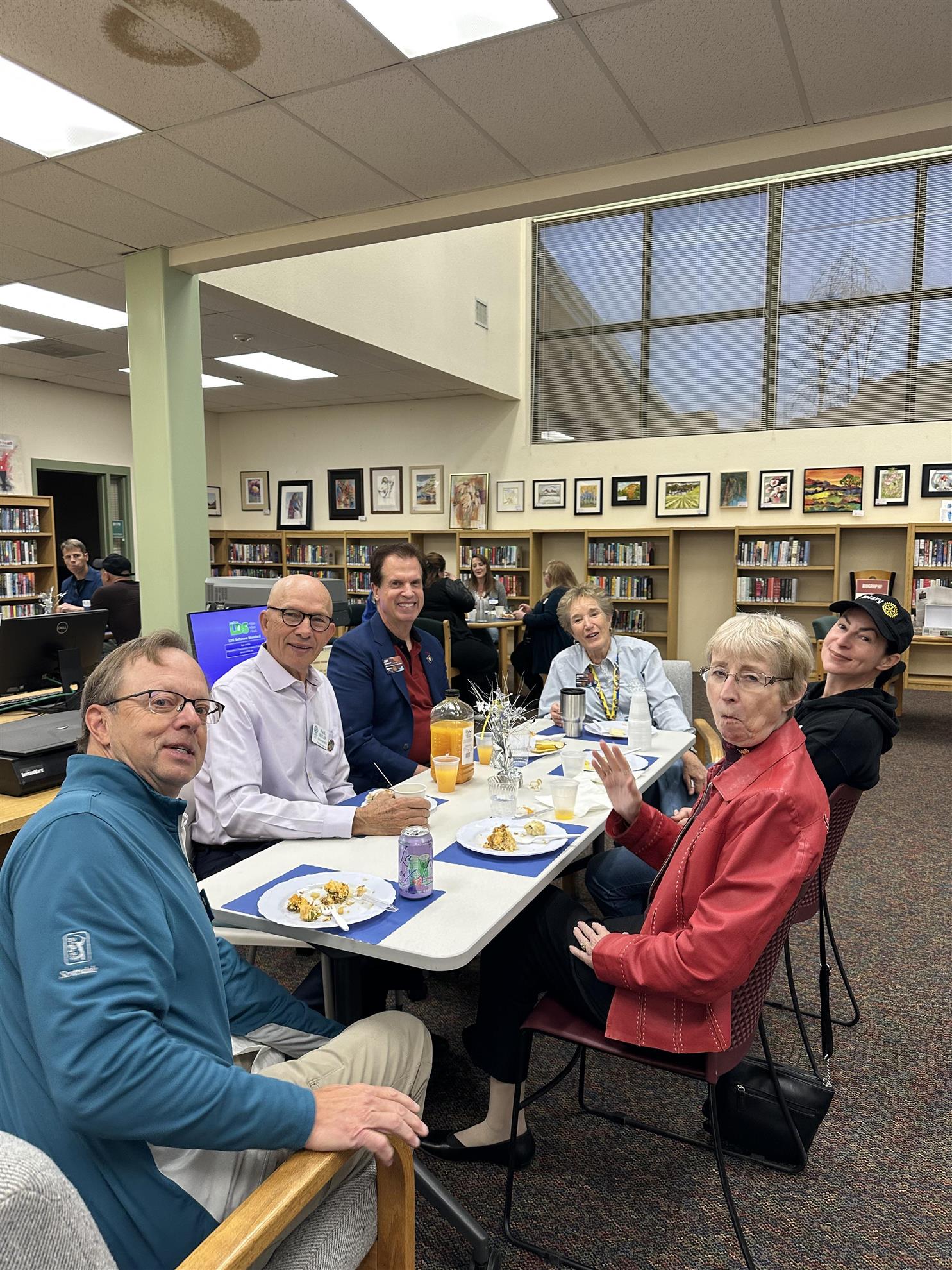 Pictured with David at his returning member induction ceremony are Membership Chair Del Rae Cruszen, District Governor Jim Schmidt, and Roger Schaefer, who had the honor of “pinning” David. Welcome home, David. We’re glad you’re back in the Rotary family.